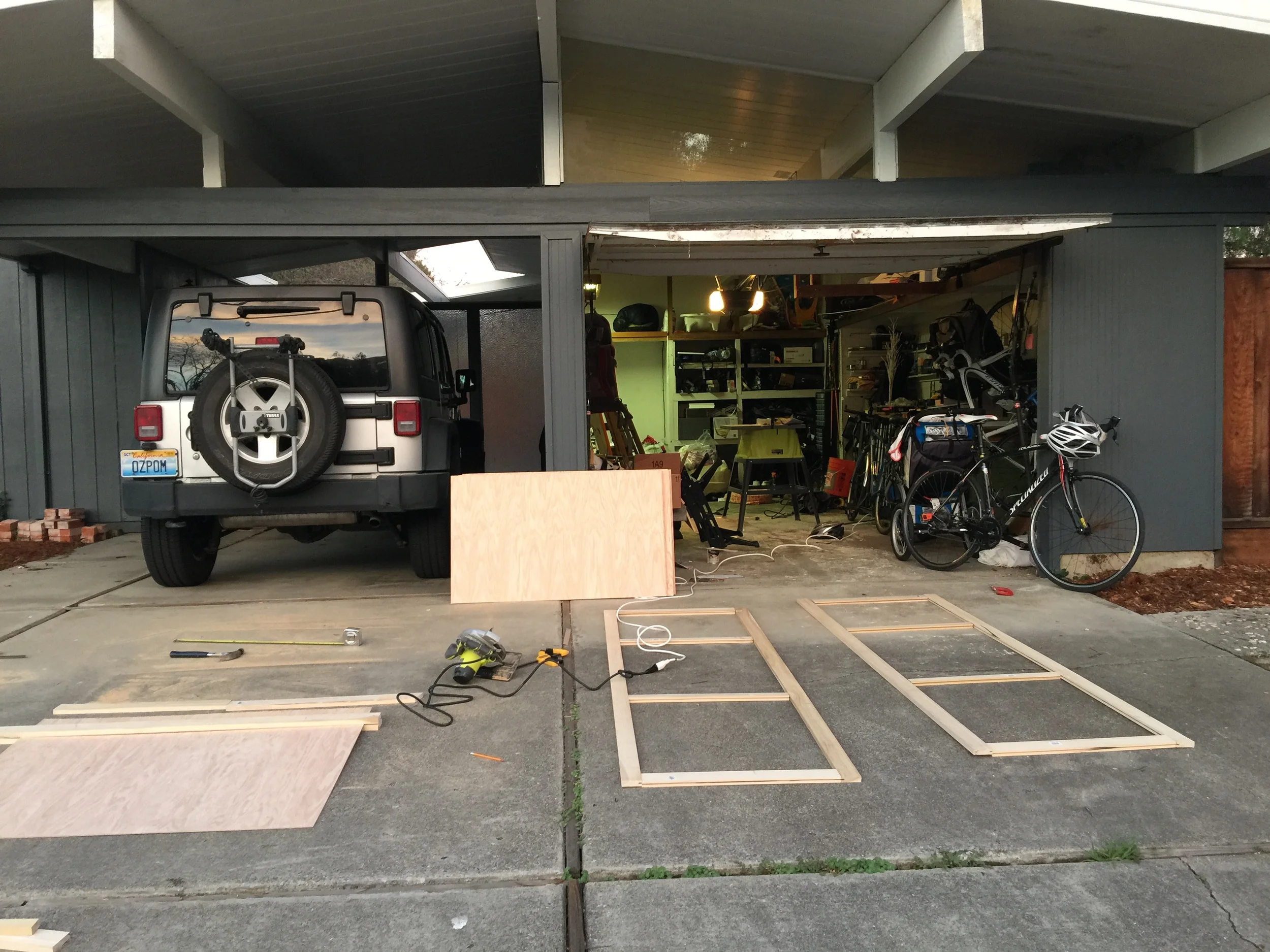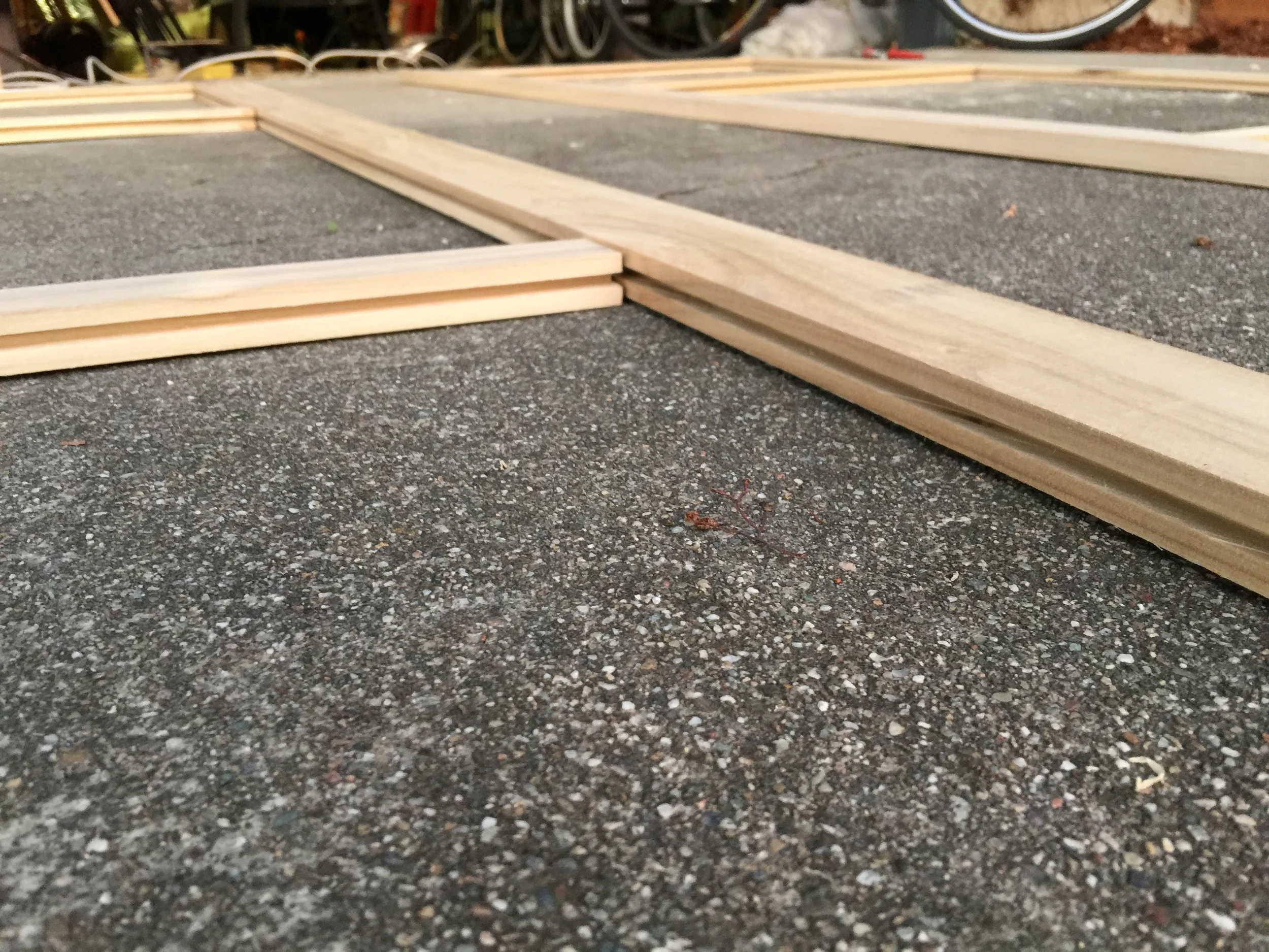 I then measured out three even panels of luan, and ripped them with a circular saw. I made a rough jig to make my cuts straight, but I should have done more as my luan panels were not perfectly square, and that made it harder to get everything to slot together as I assembled it.